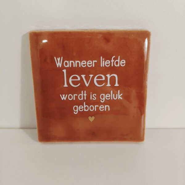 Keramieken tegeltje: ‘Wanneer liefde leven wordt’ terra/crème