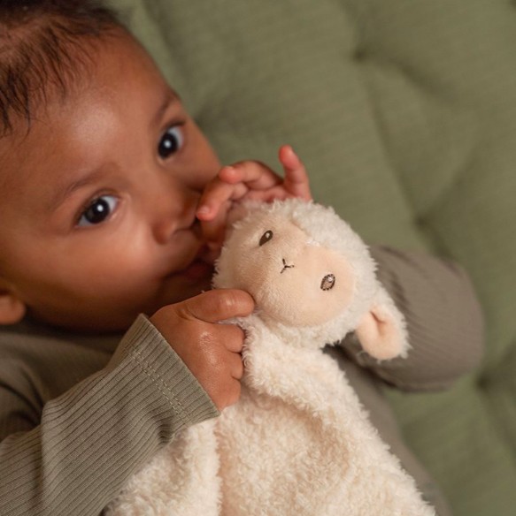 Altijd binnen handbereik. Kindjes hebben dit doekje graag in de buurt. In de box of in de kinderwagen. Deze met een schaapje is afkomstig uit onze Little Farm collectie en biedt vele leuke details om te ontdekken. Denk aan makkelijk vast te pakken leuke labeltjes die de zintuigen prikkelen. De superzachte schaap geeft dit knuffeldoekje een speelse uitstraling.